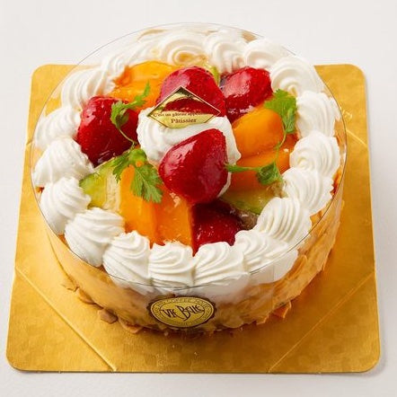 お誕生日や記念日に。ふんわりと焼き上げたスポンジに、なめらかなカスタードクリームをたっぷりとサンドし、みずみずしいフルーツを贅沢にトッピングしました。クリームのコクとフルーツの爽やかな甘さが絶妙に調和した、見た目にも華やかな一品です。特別な日のお祝いにもぴったりのケーキをぜひお楽しみください。
